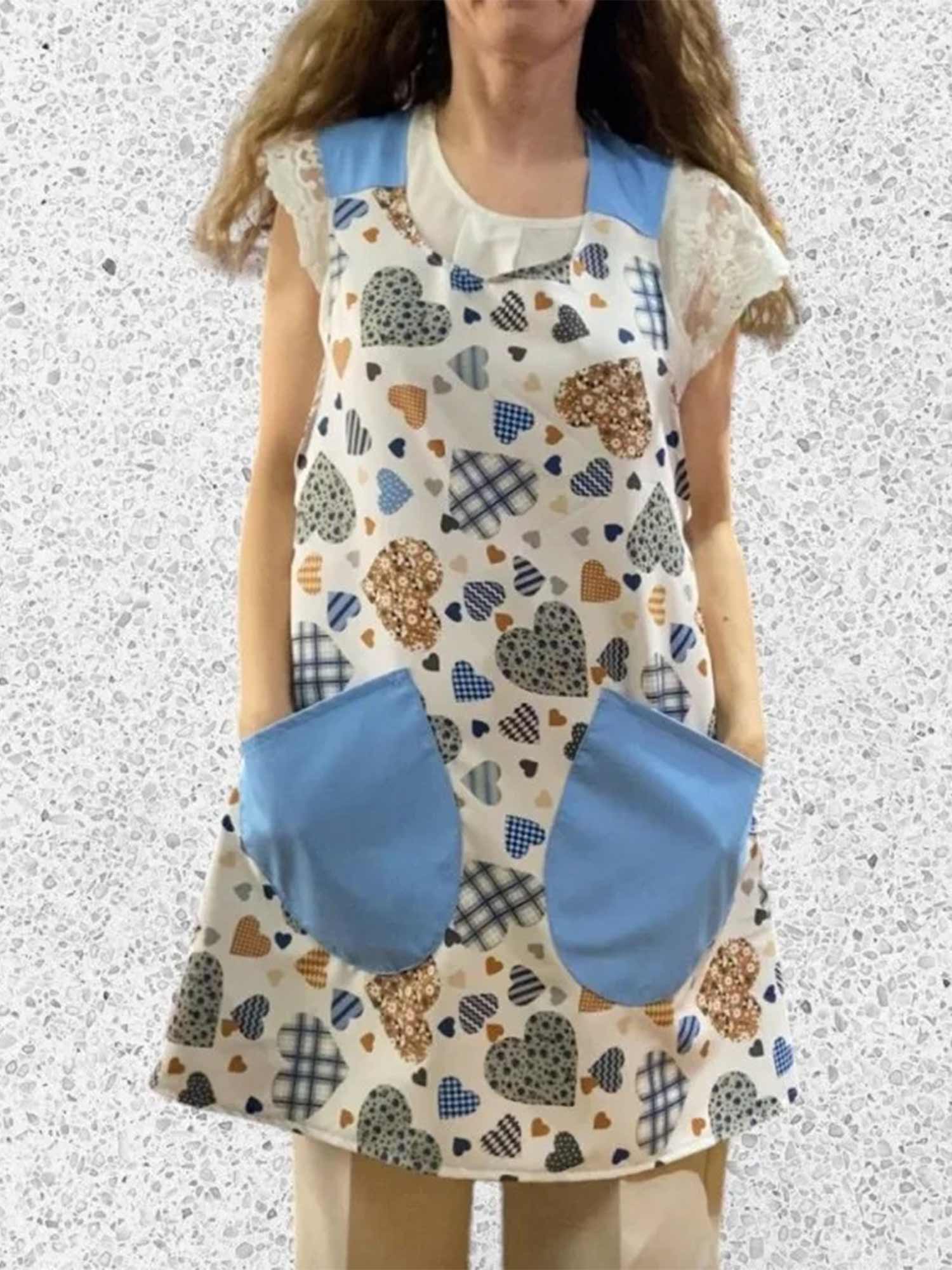Blue Patchwork Heart All Over Print Cross Strap Apron