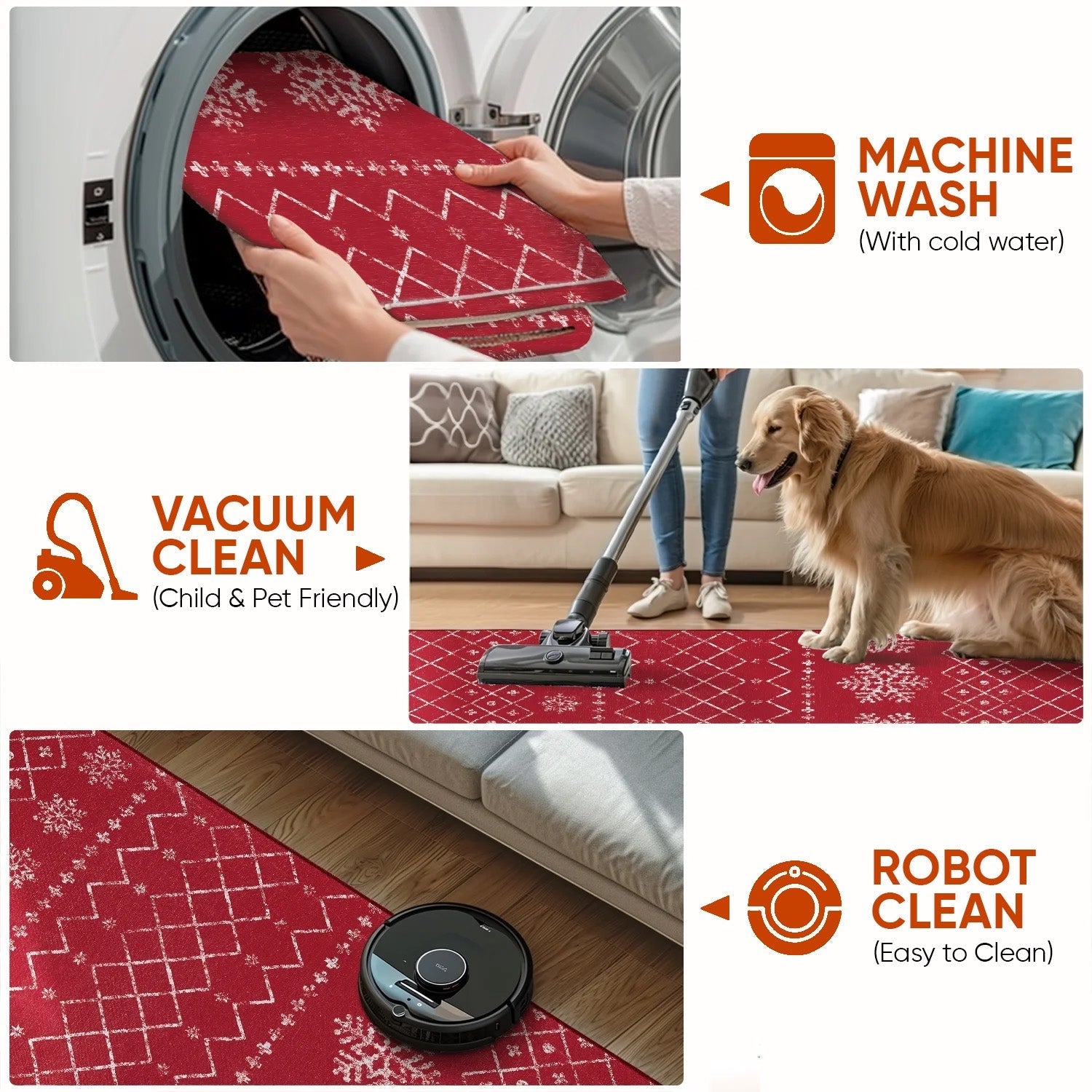 Machine Washable: Lightweight, easy to remove, and safe to throw in the washing machine. For quick clean-ups, simply use a handheld vacuum, broom, or rag
